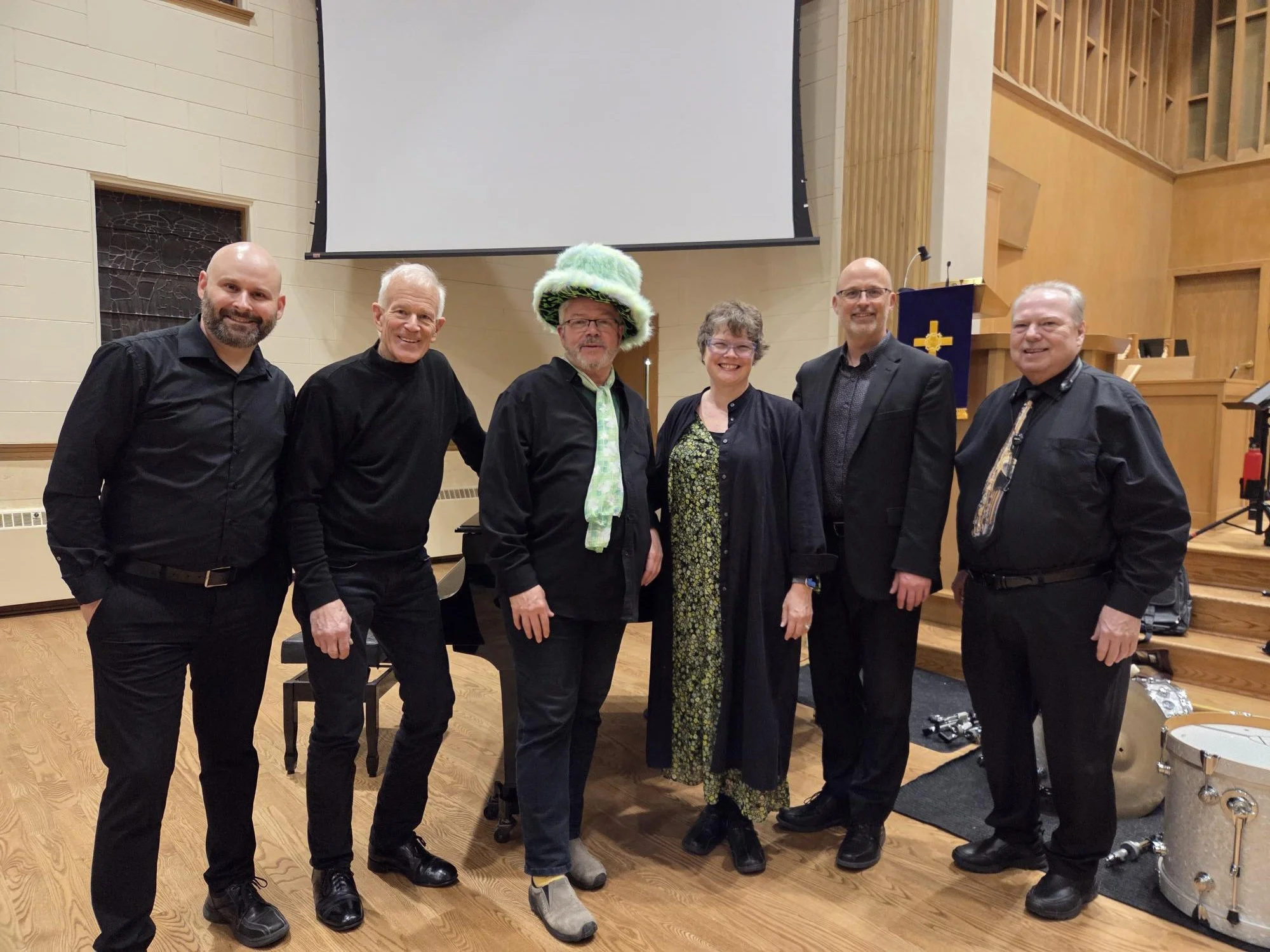 Jazz Vespers March 11, 2026 - left to right: Ian MacKay, Larry Ernewein, Rev. Kerry, Rev. Michelle, Nevin Campbell, Ken McLagan